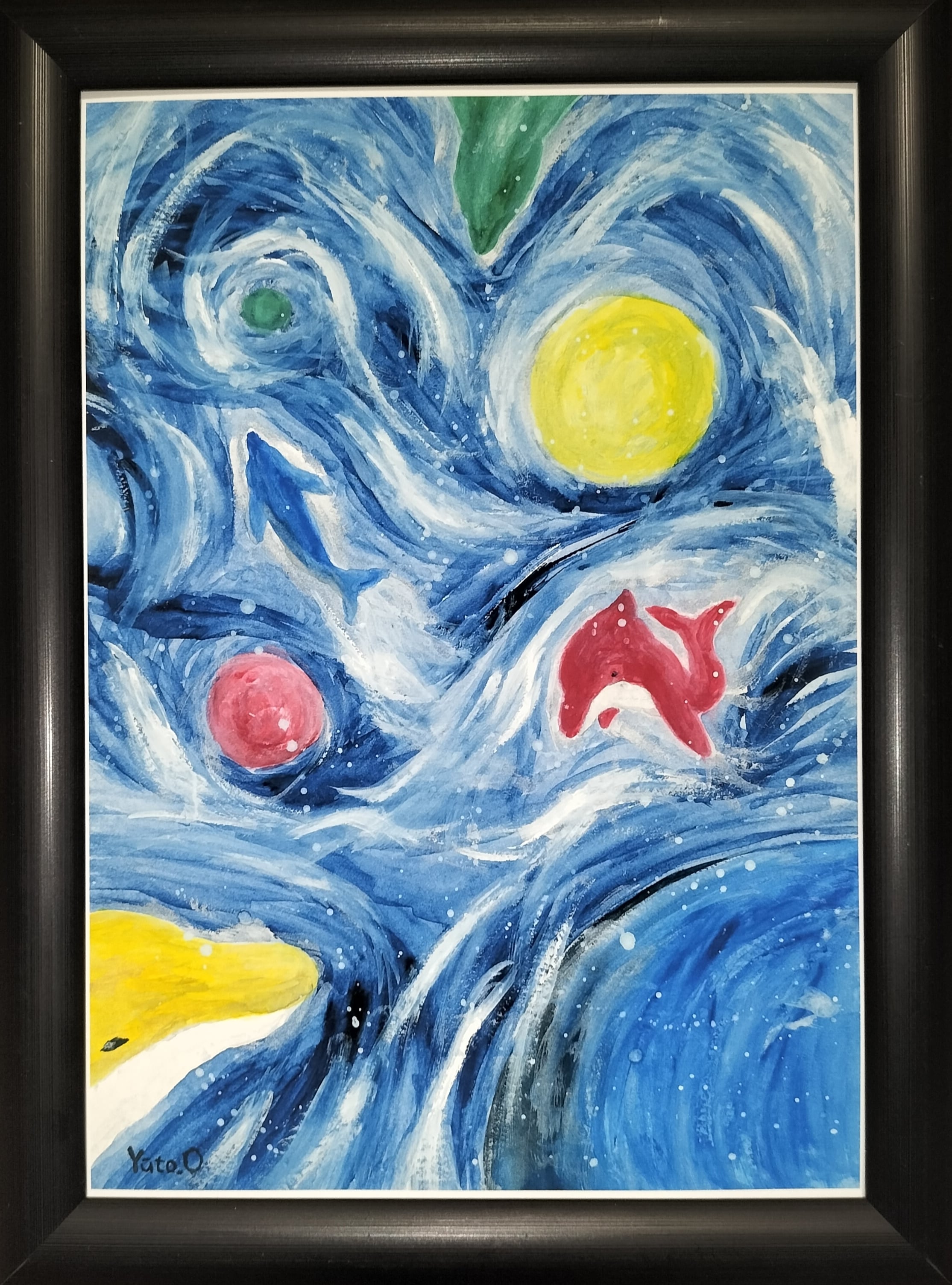 ◆輝く水面の下で踊る二頭のイルカの絵◆