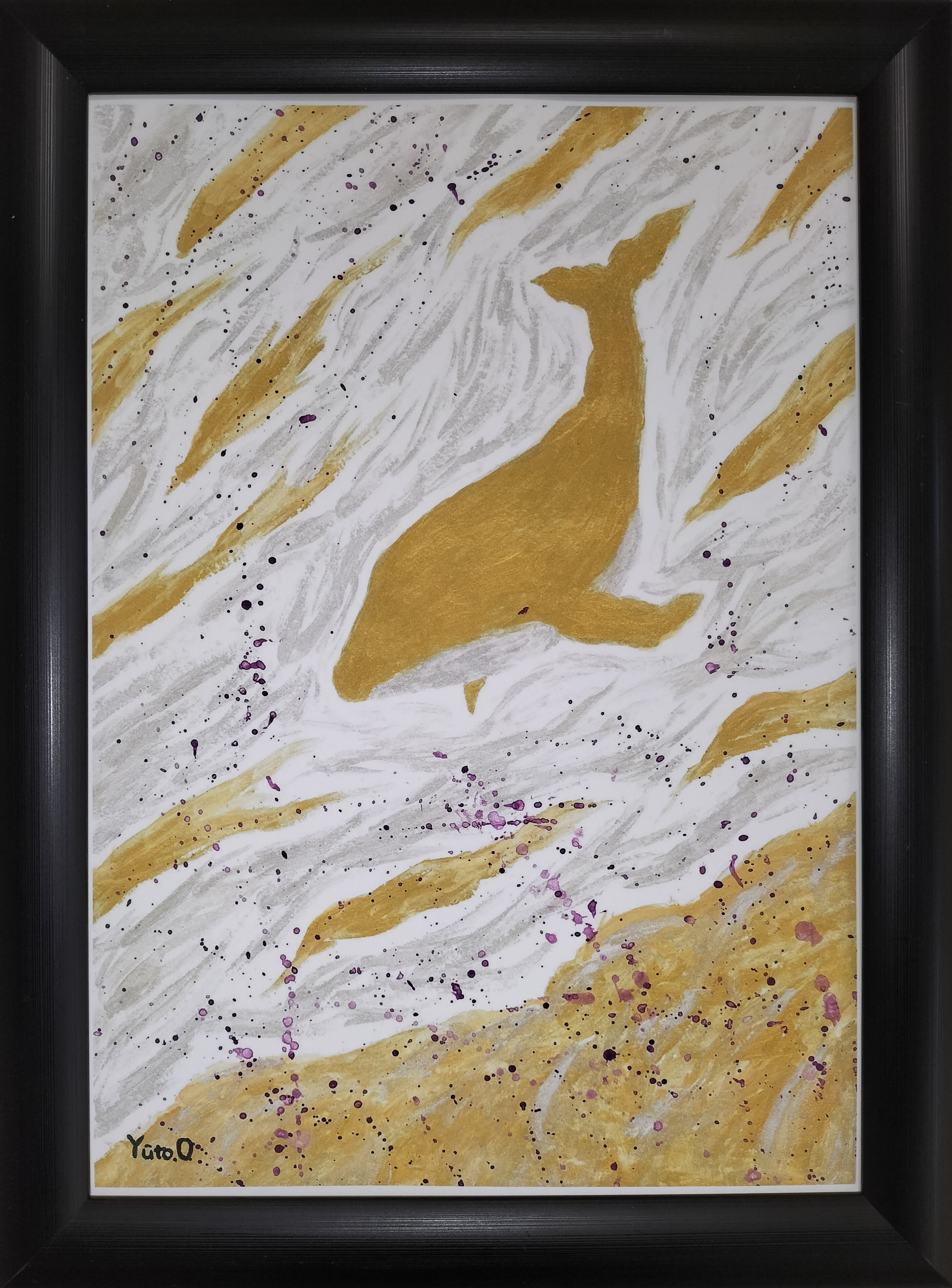 ◆夢のような世界を泳ぐ金色のクジラの絵◆2025.10.16創作
